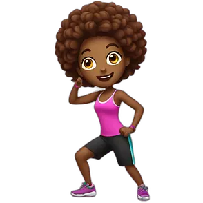 Blond smiling and dancing girl with Zumba logo on white t-shirt emoji