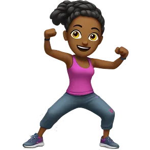 Blond girl smiling in white t-shirt with text Zumba emoji