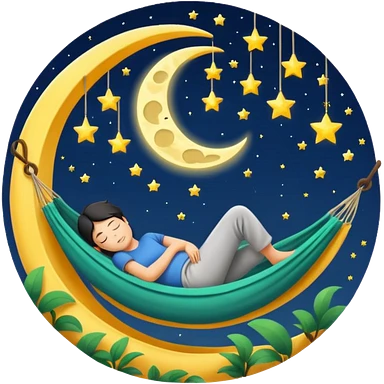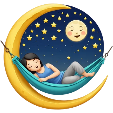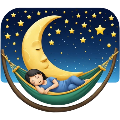 crescent moon used as hammock with human character sleeping in it emoji