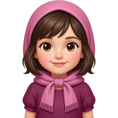 Small cute girl In dark pink dress with same scarf on her head covering her hair emoji