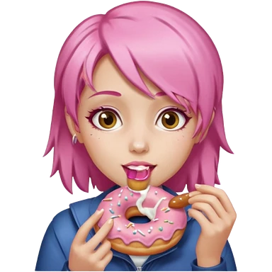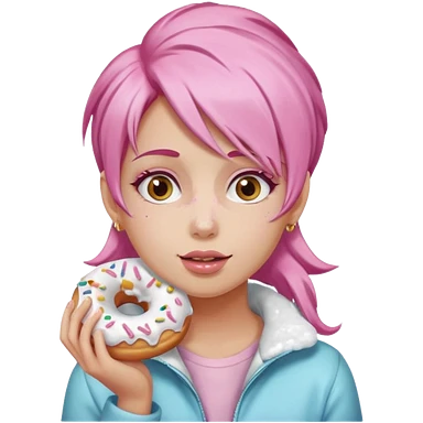 pink hair girl eating donuts emoji