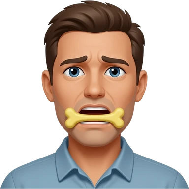 Gasping face emoji with large yellow bone in mouth and crying eyes emoji