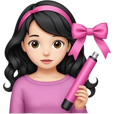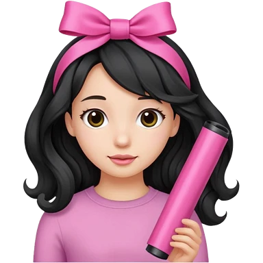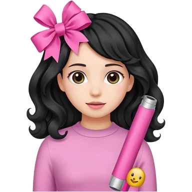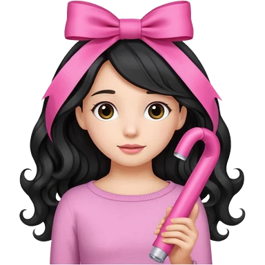 Girl with black wavy not so long hair and a ribbon hair clip make it look like wearing a pink tube emoji