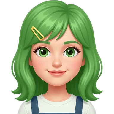 Girl with shoulder length hair curtain bangs which are side swept black hexagon glasses and mole right above the lip and below the eye emoji