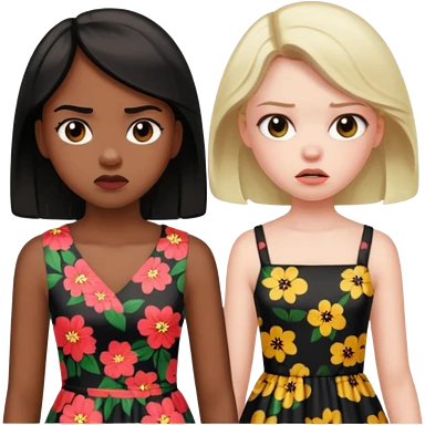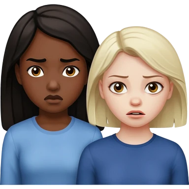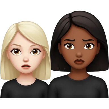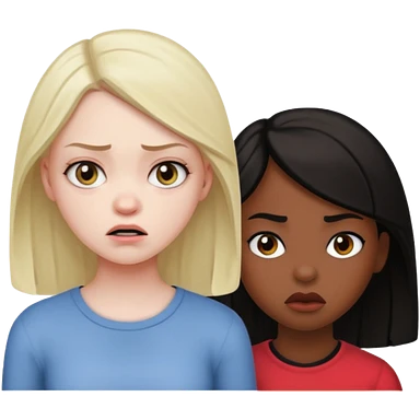 Envy - feeling of discontent at another's advantages or possessions - young plain girl looking angrily at a very pretty black girl emoji