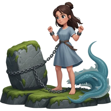 girl chained to a rock to be a sacrificial feast for the seamonster emoji