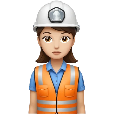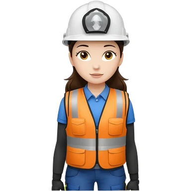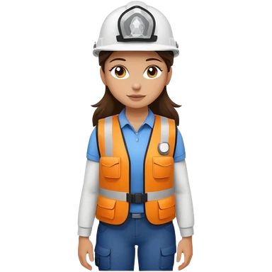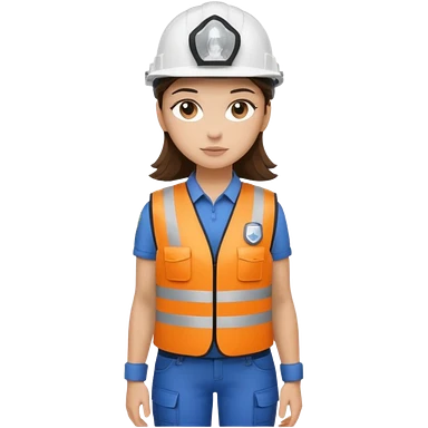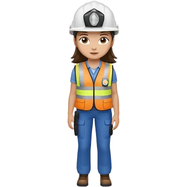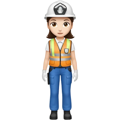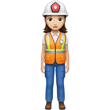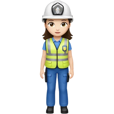 Brunette Girl full body standing with her white security helmet and security vest on emoji