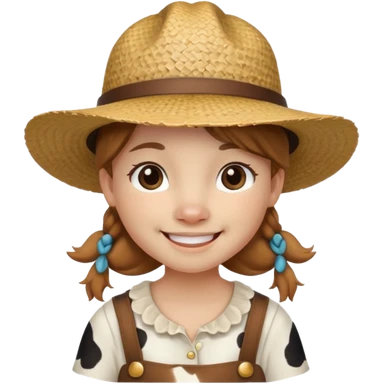 Girl cow with a small straw hat emoji