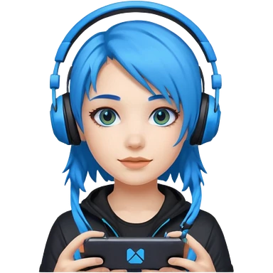 Girl gamer with neon blue hair emoji | AI Emoji Generator