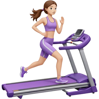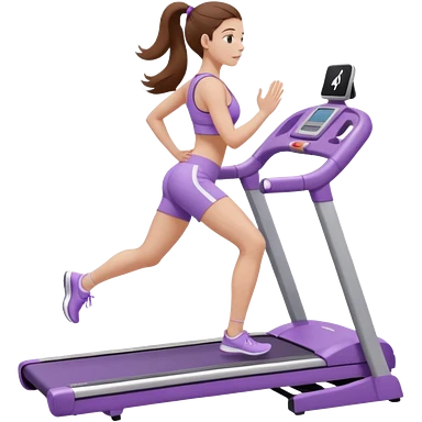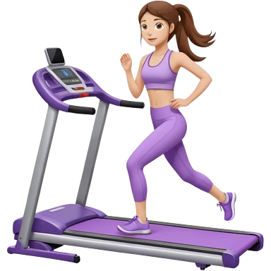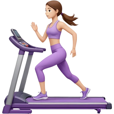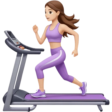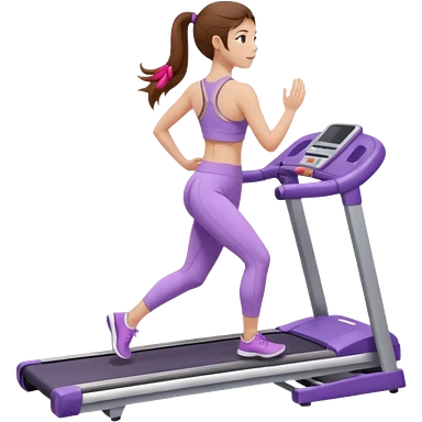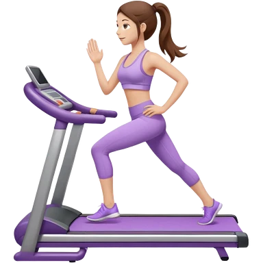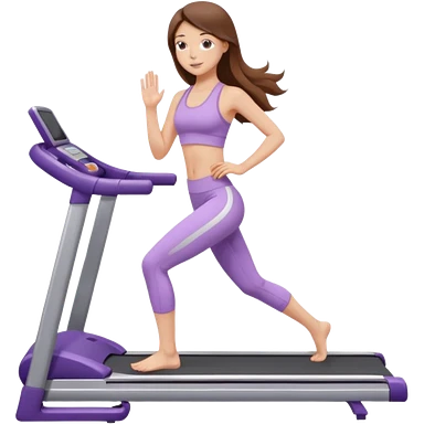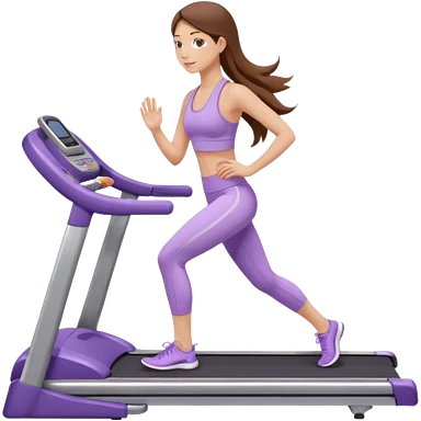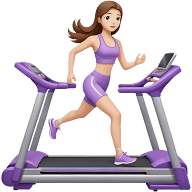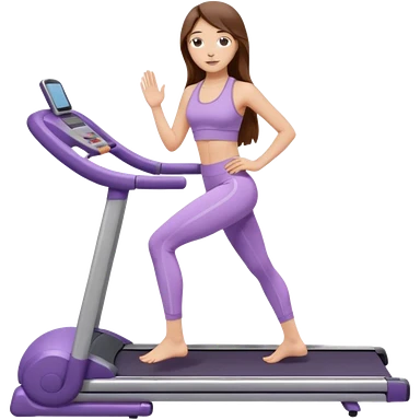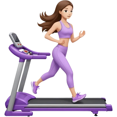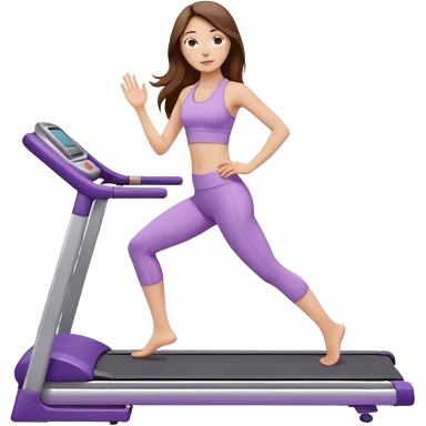 girl with long brown hair on treadmill wearing light purple yoga set emoji