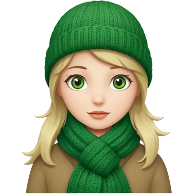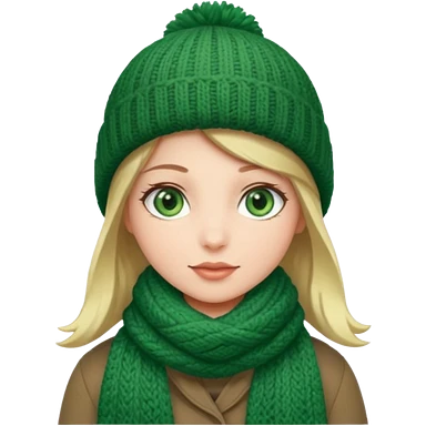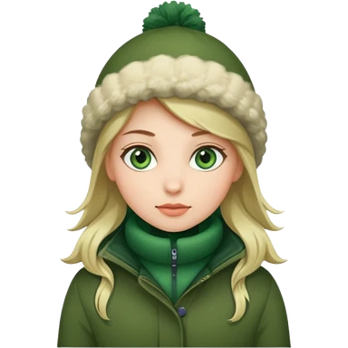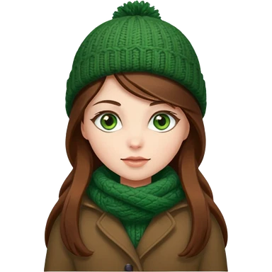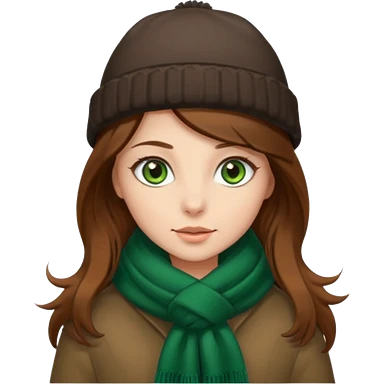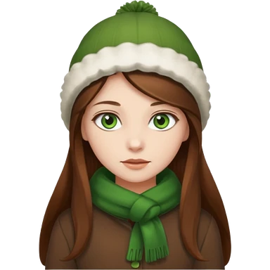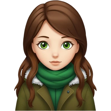 Girl green eyes brown long hair with brown-white winter clothes emoji