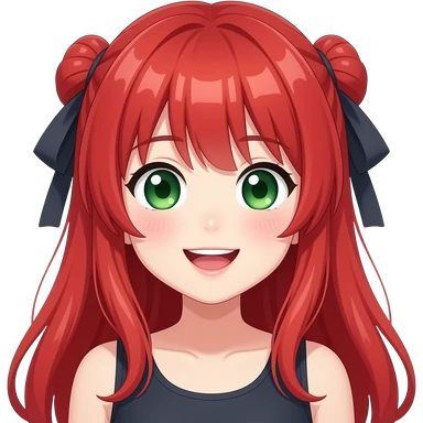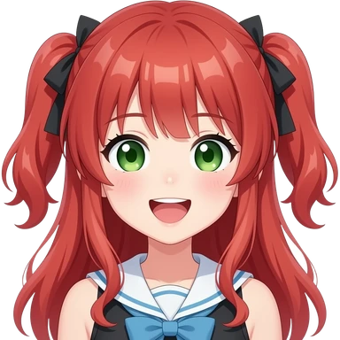 anime girl happy cryred hair green eyes black blouse with white collar emoji