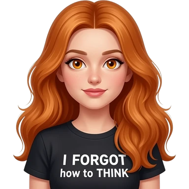 sexy girl with overlong ginger hair and ginger eyes a top with I FORGOT how to THINK written on it emoji