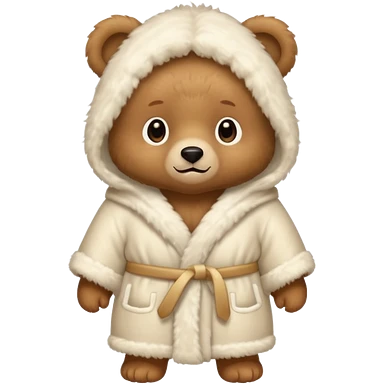 a baby light brown bear wearing a cream white robe emoji