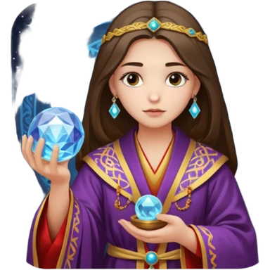 one girl with crystal hair, she is feeling happy and elated and excited, make her hair shiny with prisms and angles and edges emoji