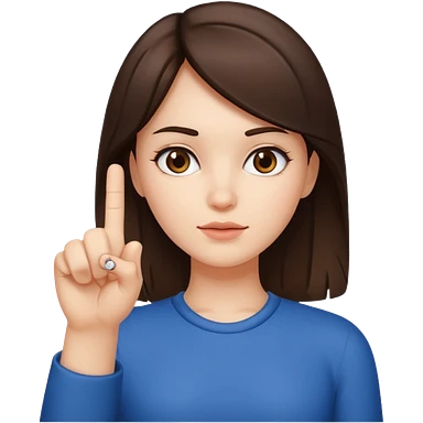 Goth girl with v shaped bangs, black hair of medium length, brown eyes, holding up a middle finger emoji