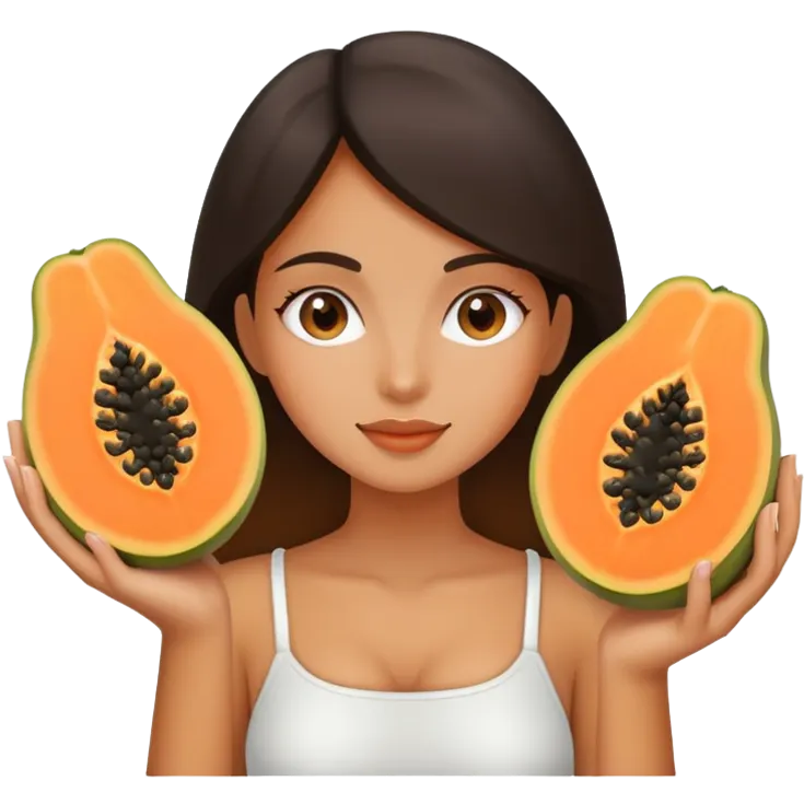 Girl holding papaya sliced in half emoji | AI Emoji Generator