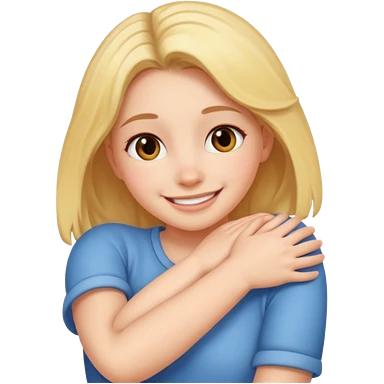blonde girl hugging herself emoji