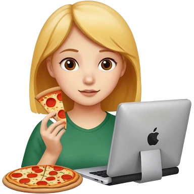 a girl looking in her computer a pastrie with good food emoji
