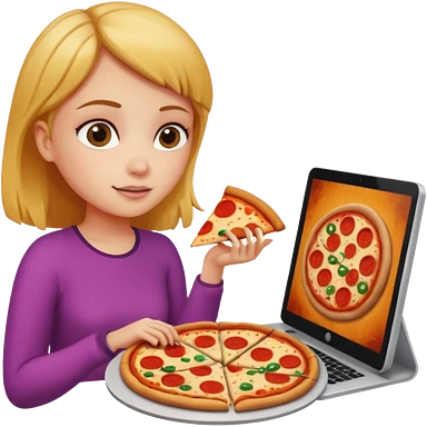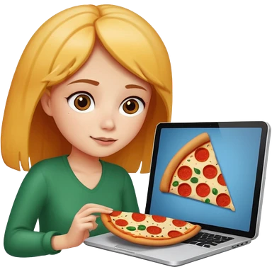 a girl looking in her computer and in the ocmputer you can see food so sho the computer screen emoji