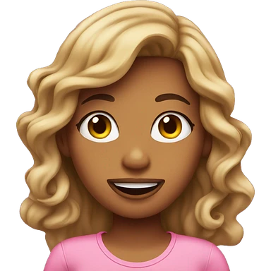 A girl with long brown wavy hair and pale pink clothes is stretching emoji