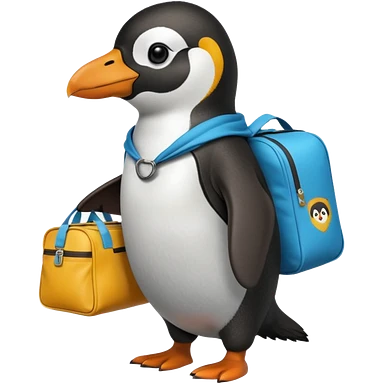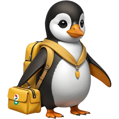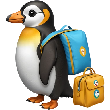 Una persona de apariencia peruana, vestida con ropa característica sin pelo montado a espaldas de un pingüino con una bolsa de la empresa de reparto glovo en la espalda emoji