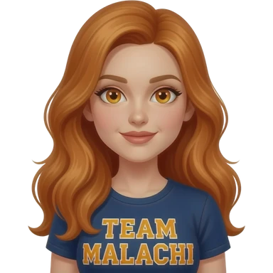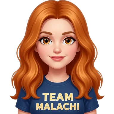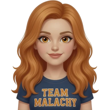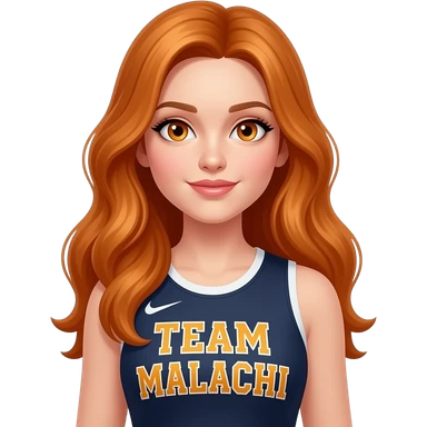 sexy girl with long ginger hair and ginger eyes a top with TEAM MALACHI written on it emoji