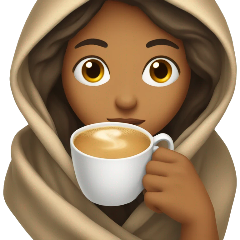girl inside a blanket sipping coffee eyes closed ,make coffe cup orange emoji