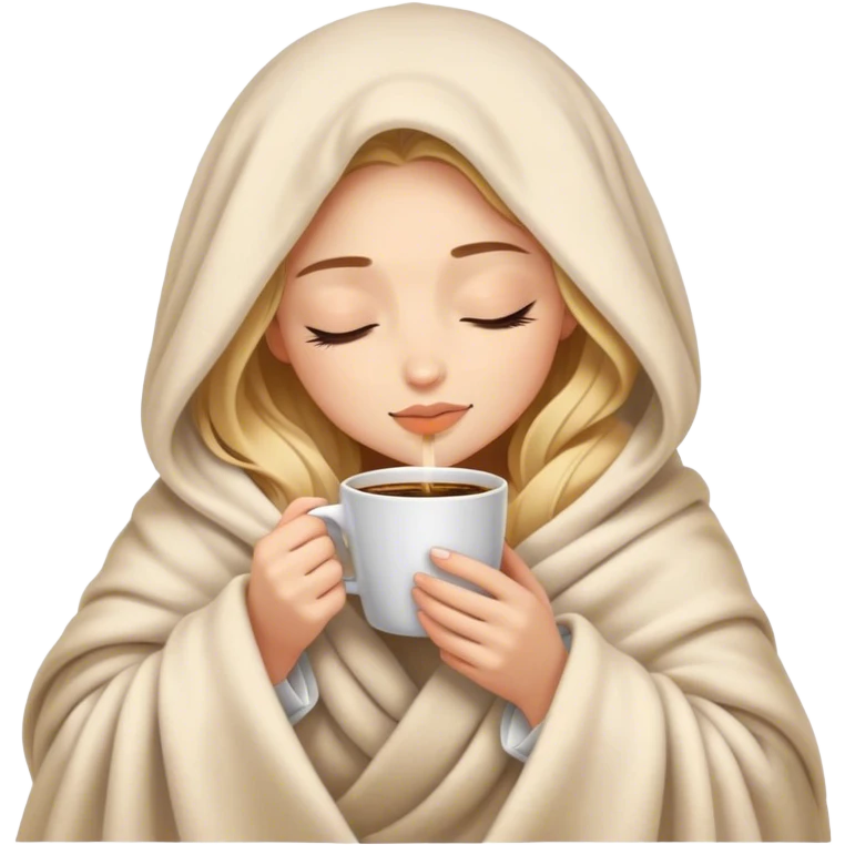 girl inside a blanket sipping coffee eyes closed emoji | AI Emoji Generator