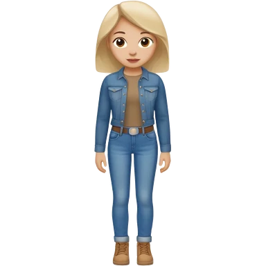 Thin fair girl with little long face and long black straight hairs, in baby pink top and blue jeans holding a cake emoji