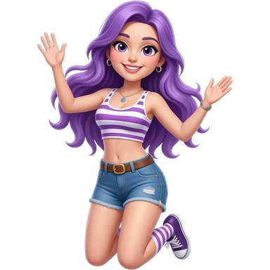 GIRL WITH LONG PURPLE HAIR IS JUMPING emoji