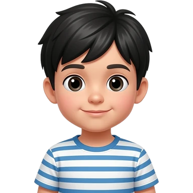 innocent kid with black hairs wear a whtie and blue stripe emoji