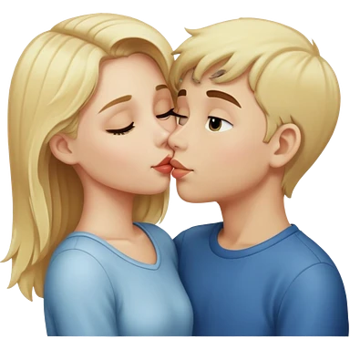 a boy with brown hair kissing a girl with long brown curly hair emoji
