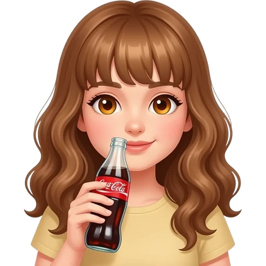 girl with wavy light brown hair and curtain bangs with amber eyes drinking a diet coke emoji