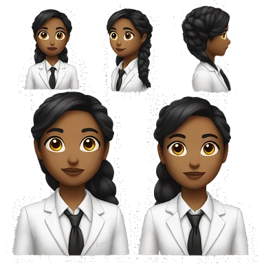 a young girl with Latin features, dark skin, long black hair with a ponytail, makeup, big eyes, small nose, thin eyebrows, wearing a white suit, white shirt and black tie emoji