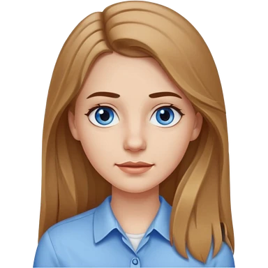 A girl with long light brown hair, hazel eyes, fair skin, long eyelashes and drawn eyebrows emoji