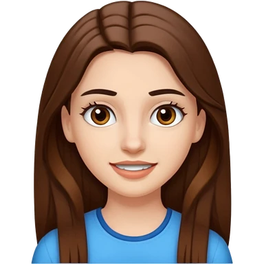 A girl with long brown hair, hazel eyes, light skin, long eyelashes, drawn eyebrows, and pink lips. emoji