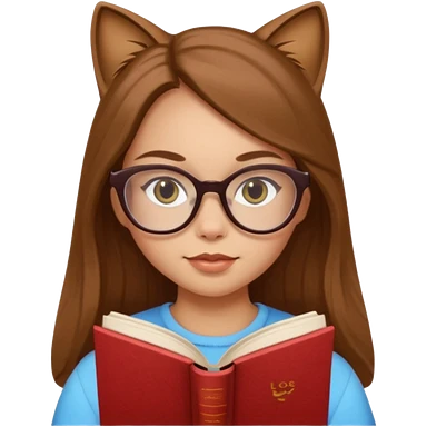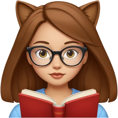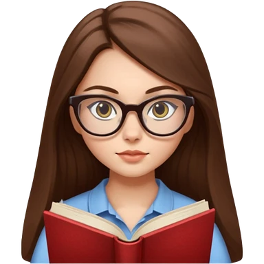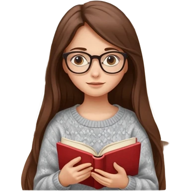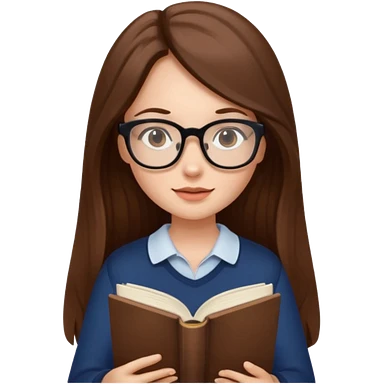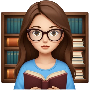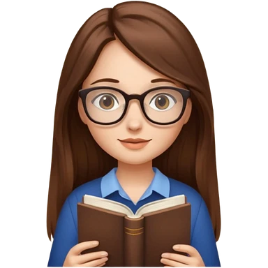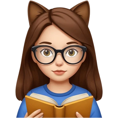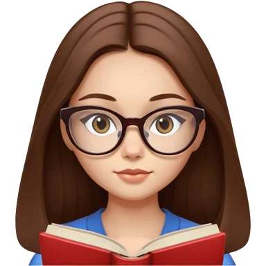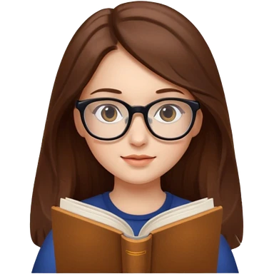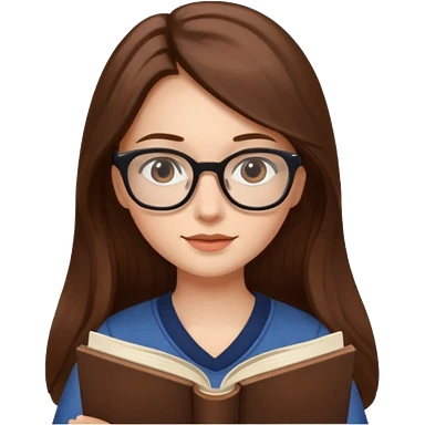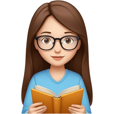 beautiful girl long brown hair, wear glasses, reading a book emoji