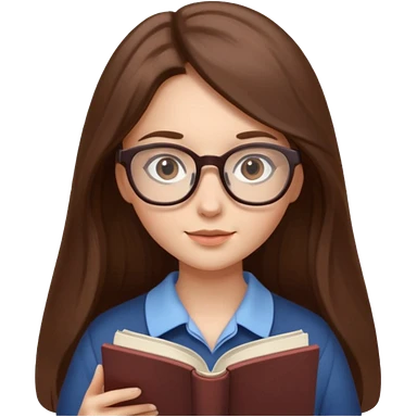 girl long brown hair, wear glases, study emoji | AI Emoji Generator