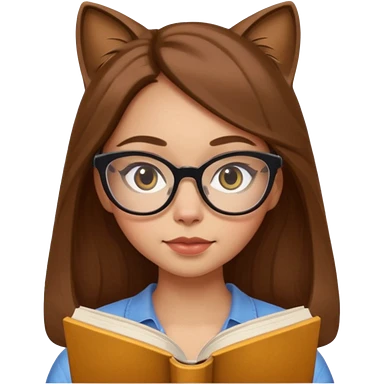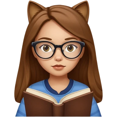 ACB clean beautiful girl long brown hair, wear glasses cat eye, reading a book emoji