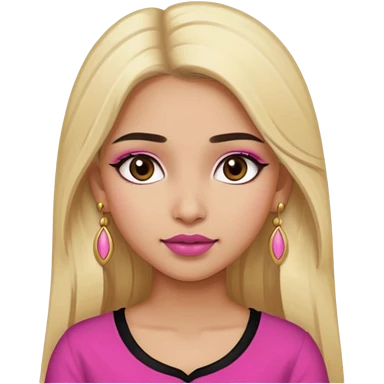 Sweet Indian girl blond long hair darkbrowm eyes brown/pink lipstick pink blush black top gold earrings brown eyebrows emoji