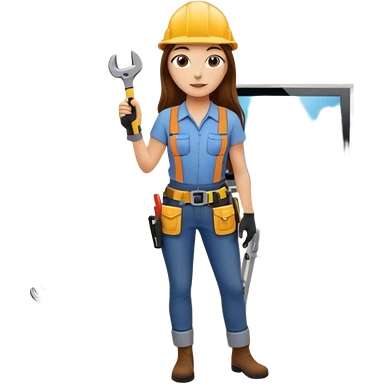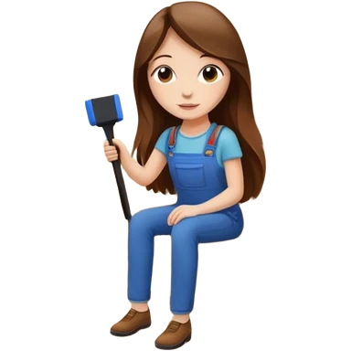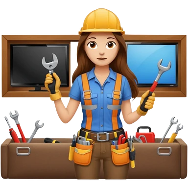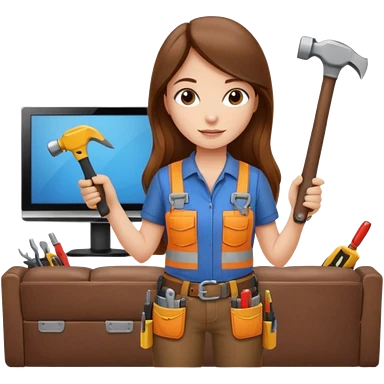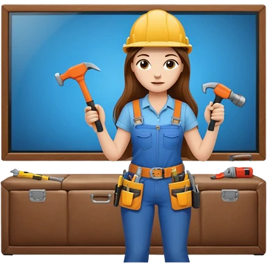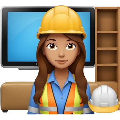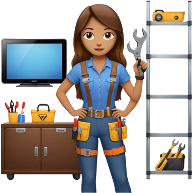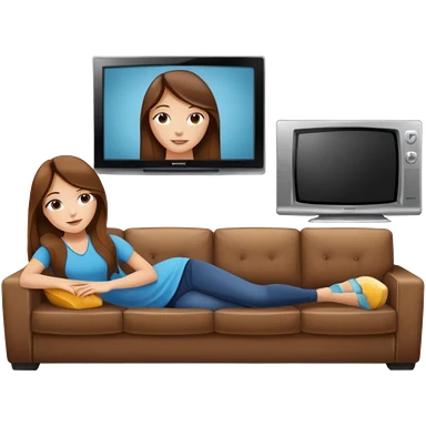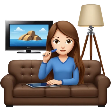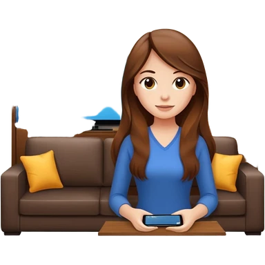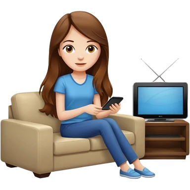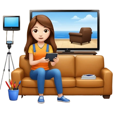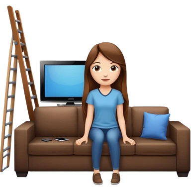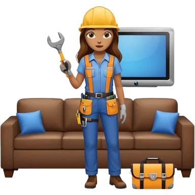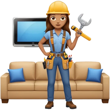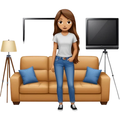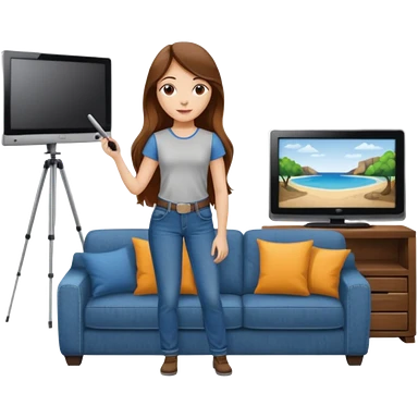 beautiful girl with long brown hair constructing new lounge room area with flat screen tv and couch emoji