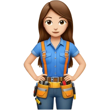 girl with longer wavy brown hair with bangs and blue eyes emoji