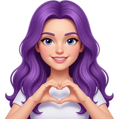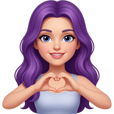 sexy girl with long purple hair and purple eyes makes a heart sign with her hands emoji