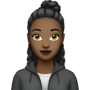 A cute brunette girl with clean girl makeup with a ponytail with a white bow wearing grey comfy clothes emoji