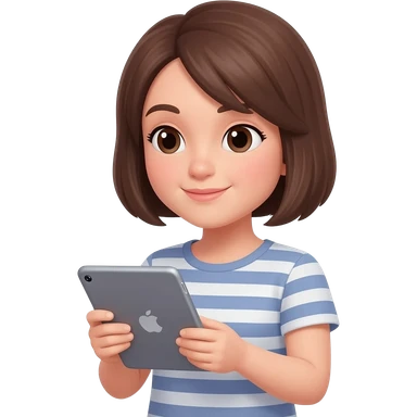 Brune aux cheveux court qui prend son temps avec son iPad emoji