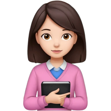 lecture girl with straight bangs fringe long black color hair with book and blackboard emoji