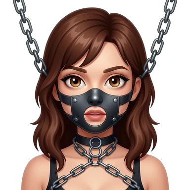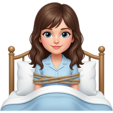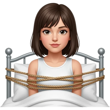 Girl with long brown hair in a black dress, sitting in bed under the covers, holding a wine glass. Heavy makeup and eyelashes .there is a pillos emoji