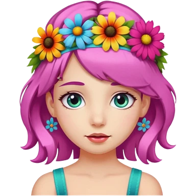girl with gorgeous long brown hair, blue eyes, long lashes makeup, sexy pink lips, wearing a purple and pink graduation cap and gown emoji