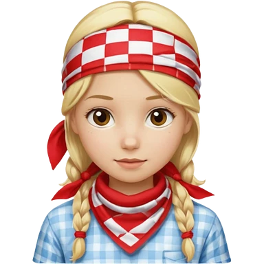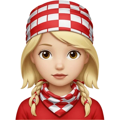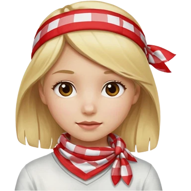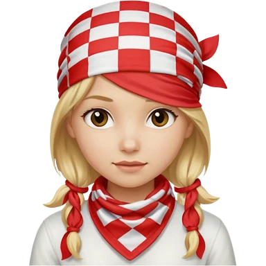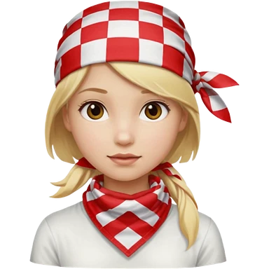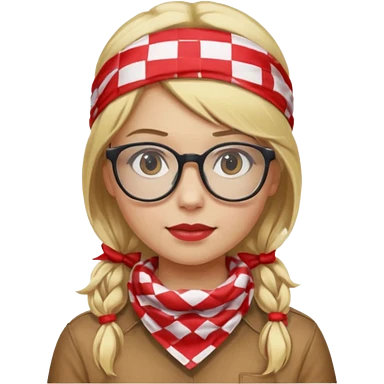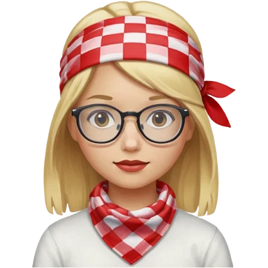 girl blonde hair, wear red and white checkered bandana, glasses emoji